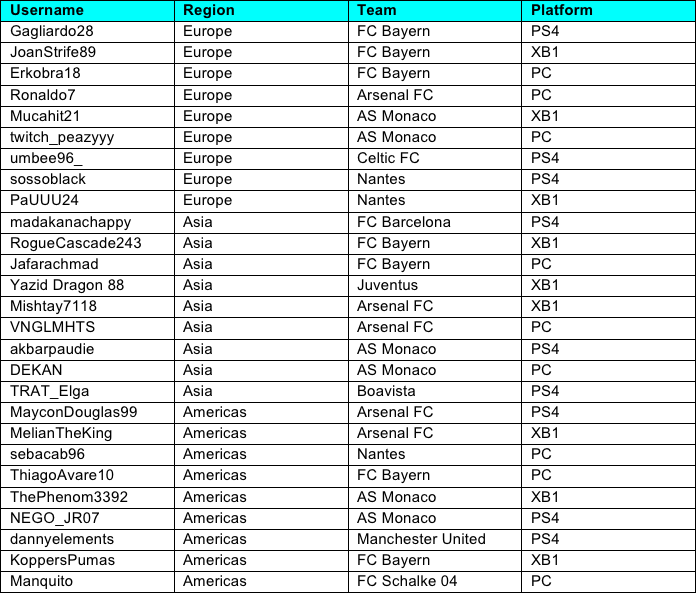 Nur Spieler der höchsten Spielklasse hatten die Chance, sich zunächst für die Regional Finals und später für die World Finals zu qualifizieren. Dort besteht nun auch die Möglichkeit, Preisgeld und die Aufmerksamkeit der besten Fußballklubs der Welt zu gewinnen, die auf der Suche nach ihrem nächsten eFootball-Profi sind.