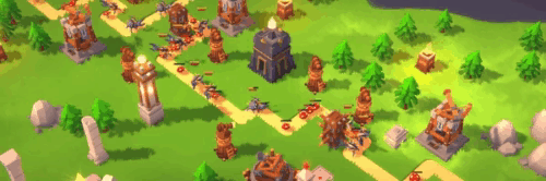 Das Spiel hat einen hellen visuellen Stil mit einer lebendigen Farbpalette, die sich von den realistischen Farbtönen unterscheidet, die für Strategiespiele typisch sind. Das leuchtende Grün der Wiesen und die cartoonartigen Strukturen schaffen eine einladende Atmosphäre, die trotz der Spannung des Gameplays fast entspannend wirkt. Durch die Möglichkeit, die 3D-Ansicht zu zoomen und zu drehen, kann man die Details der Animationen der Gegner bewundern, die aus der Nähe betrachtet sehr interessant sind. Das Winterlands-Update hat die gestalterische Sorgfalt des Projekts unter Beweis gestellt, mit Schneefällen, die Türme und Produktion allmählich schwächen und dazu zwingen, Flammenaltäre zu suchen, um der Kälte entgegenzuwirken. Diese Art der visuellen Abwechslung bereichert das Erlebnis, ohne es zu überfrachten. Der Soundtrack bleibt dezent, aber funktional. Tagsüber begleiten fröhliche Melodien die Arbeit in der Fabrik, ähnlich wie in The Sims, mit Umgebungsgeräuschen von Äxten, die auf Bäume schlagen, und Spitzhacken, die Felsen zerschlagen. Nachts wird die Musik bedrohlicher und unterstreicht die Ankunft der feindlichen Horden, ohne dabei bedrückend zu wirken.