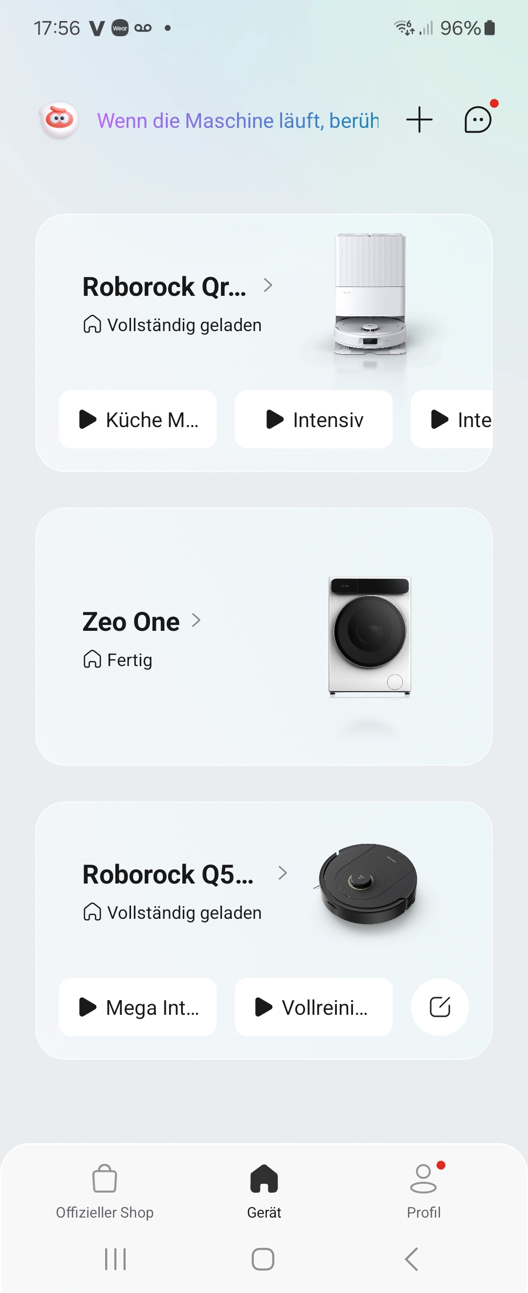 The Roborock app offers extensive control options. From customized cleaning schedules and zone cleaning to control via voice assistants like Alexa or Google Assistant – everything is possible. The app's user interface is user-friendly and clearly laid out. Unfortunately, the UI is only designed for mobile phones. While the app runs on tablets, it doesn't utilize their display. We also found it very convenient that the same app manages all existing Roborock devices – in our case, the Qrevo Pro, a Q5 Pro, and a Zeo One washer-dryer.
