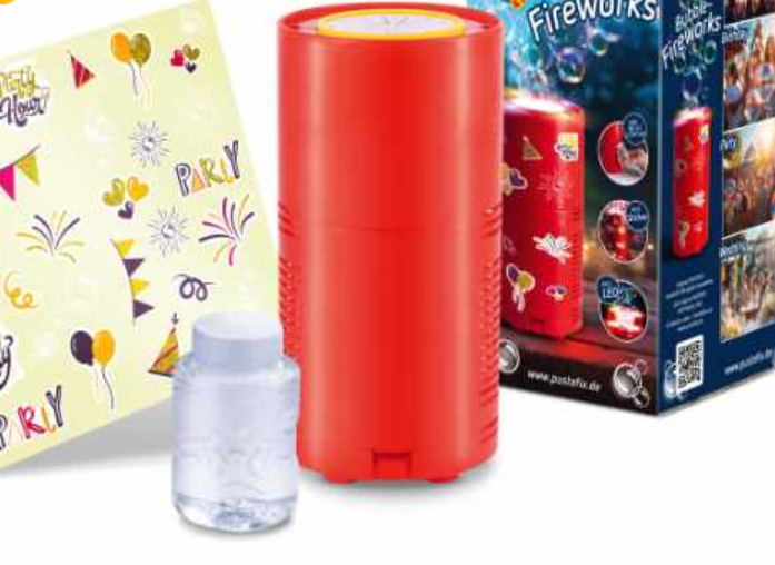 Die Bubble Fireworks von PUSTEFIX verwandeln jede Feier in ein farbenfrohes Lichtermeer. Auf Knopfdruck wirbeln unzählige, schillernde Seifenblasen durch die Luft, die dank der integrierten LED-Lichter in einem magischen Glanz erstrahlen. Besonders im Dunkeln entfalten die Bubble Fireworks ihre volle Pracht und zaubern sofort eine festliche Stimmung. Ideal für Weihnachten, Hochzeiten, Festivals und natürlich die große Silvesterparty – komplett umweltfreundlich und ohne Lärm, dafür mit der Extraportion Bubble-Magie. Das Set enthält alles, um sofort loslegen zu können: 80 ml PUSTEFIX Seifenblasenflüssigkeit und ein Sticker-Set für die individuelle Gestaltung. Link: https://www.pustefix.de/shop/bubble-fireworks/