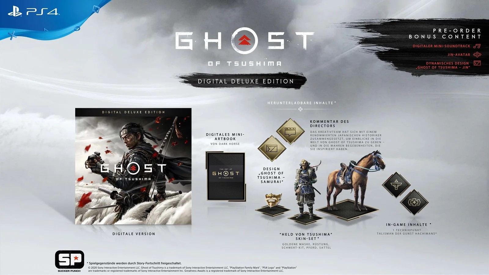 Ghost of Tsushima erscheint am 26. Juni in verschiedenen Editionen, die allesamt ab sofort entweder digital im PlayStation Store oder physisch bei Handelspartnern vorbestellt werden können.Vorbesteller jeder dieser Editionen erhalten folgende Boni: