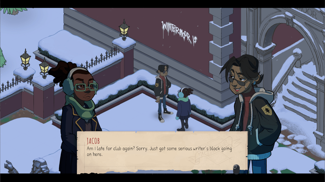 Die Spieler schlüpfen in die Rolle von Alicia, eines Mitglieds des Wintermoor Academy Tactics Clubs, in dem die Schüler das erfolgreichste Tabletop der Zeit spielen: Curses & Catacombs. Besessen von der Suche nach dem „ultimativem Club", gibt Schulleiter Enfield bekannt, dass es ein verpflichtendes Schneeballschlachtturnier zwischen den Clubs der Institution geben wird. Die Spieler müssen ihre taktischen Fähigkeiten nutzen, um die anderen Clubs in RPG-Schlachten zu besiegen. Die Herangehensweise des Spiels im Stil einer Graphic Novel unterstützt die zugrundeliegende Erzählung und die Themen wie Inklusion und wie wir uns oft sehr eng über die Gruppen, denen wir angehören, definieren.
