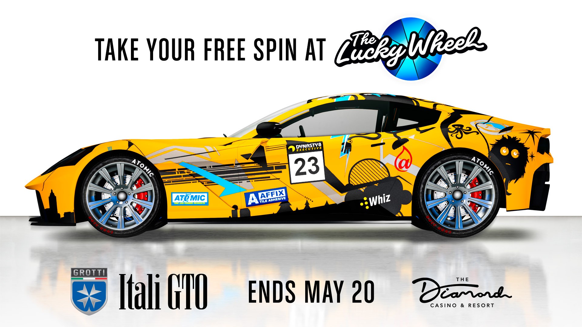 Dreht am Glücksrad im Diamond Casino & Resort, um den Hauptpreis der Woche zu gewinnen: einen getunten Grotti Itali GTO im Urbaner-Racer-Design – ein Sportwagen, der so schlank ist, dass ihr euch einer Crash-Diät unterziehen musst, um reinzupassen.