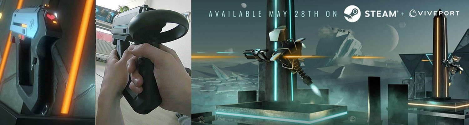 Tower Tag kann mit regulären VR-Controllern gespielt werden – die Add-ons vertiefen jedoch das Empfinden der Immersion, da sie präzise mit der virtuellen Waffe im Spiel korrespondieren. Zudem führt das Halten der Waffe mit beiden Händen durch die höhere Stabilität zu einer ebenfalls höheren Genauigkeit beim Zielen.