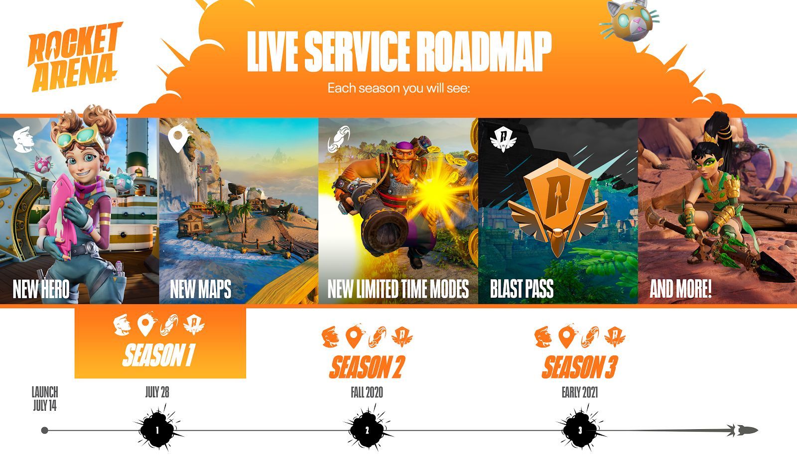 Fans, die Rocket Arena schon vor Veröffentlichung der kostenlosen Testversion gekauft haben, erhalten einen Bonus von 3.000 Raketentreibstoff, den sie für einzigartige kosmetische Gegenstände oder einen Blast Pass bis Saison 3 nutzen können. Die Pioniere dieses Spiels erhalten außerdem 10 animierte Outfits für jeden der ursprünglichen Charaktere.