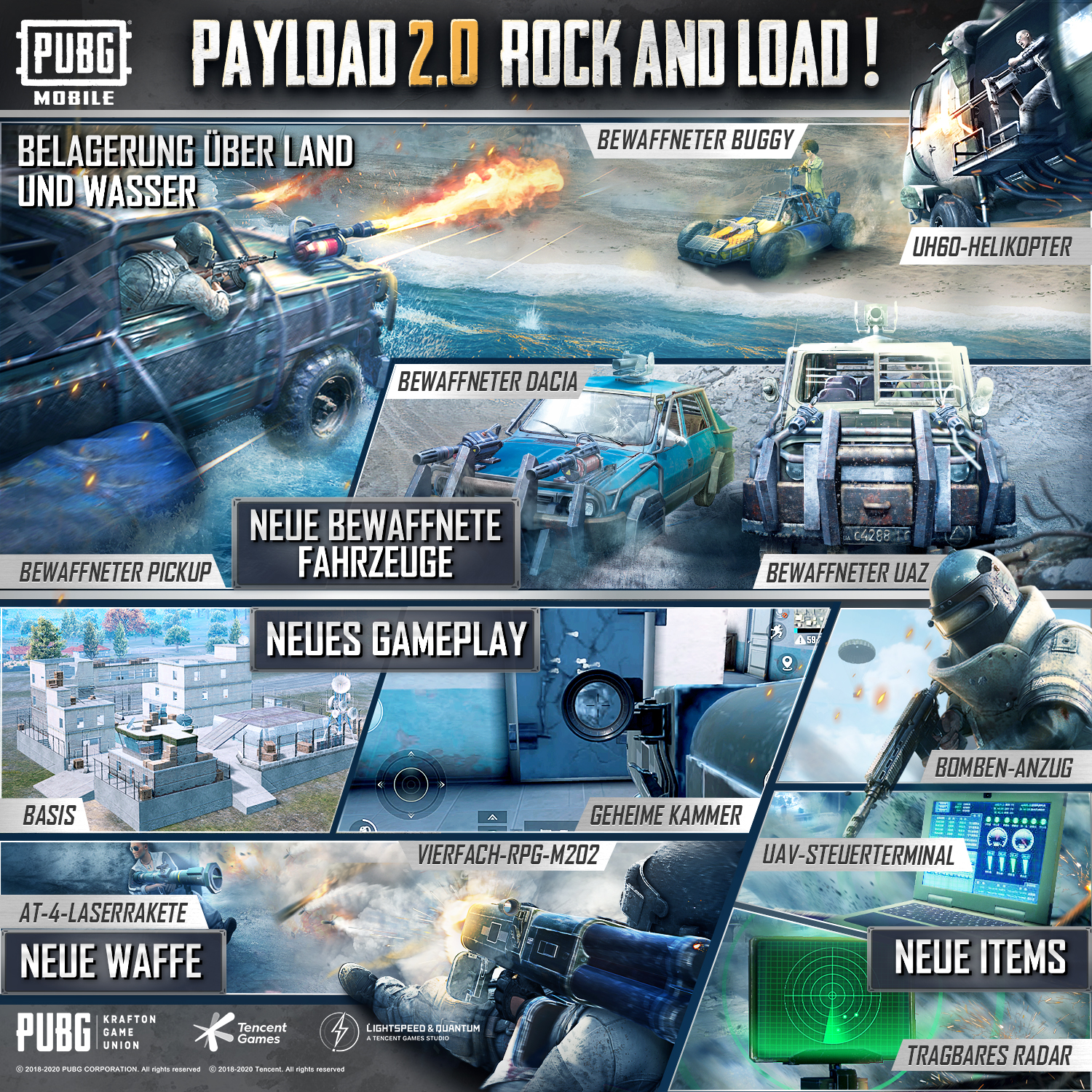 LOS ANGELES – 9. Oktober 2020 – In einem mit Spannung erwarteten Update erweitert PUBG MOBILE sein hochintensives Gameplay mit der Veröffentlichung von "Payload 2.0", einer verbesserten Version der beliebten Spielvariante "Payload" für das populäre Mobile Game. Ab heute erleben die Spieler verschiedene neue Verbesserungen wie gepanzerte Fahrzeuge, die “Super Weapon Crate” und vieles mehr mit dem kostenlosen Update im App Store und Google Play.