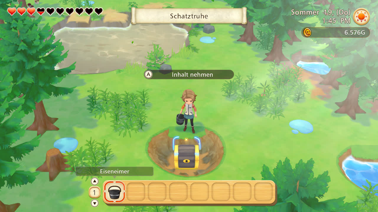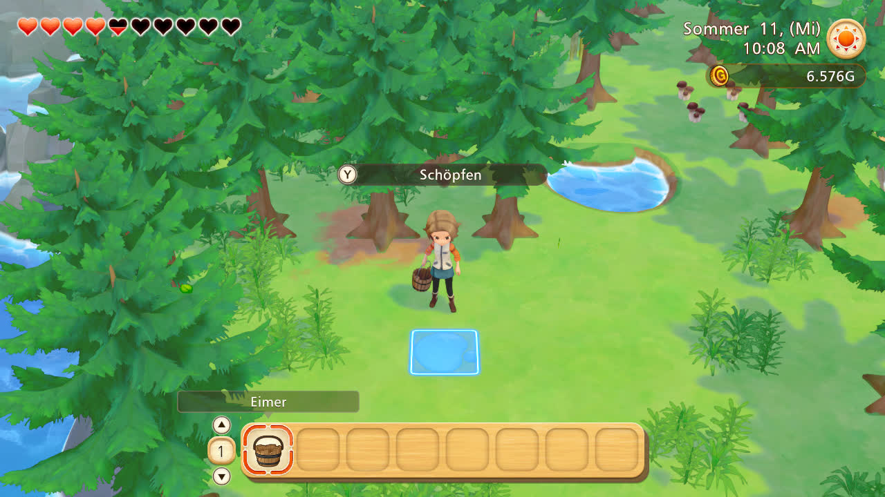 Mithilfe einer neuen Funktion können Tümpel und Regenpfützen, die beim Entdecken der Landschaft auf die Spieler warten, mit dem Eimer geleert werden. Vielleicht verbirgt sich sogar der ein oder andere Schatz am Grund eines Teiches.