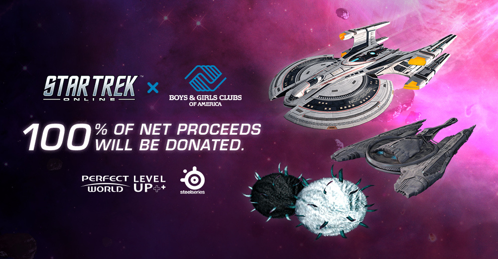 Außerdem können Spieler auch auf der Perfect World Level Up Boys & Girls Clubs Webseite direkt spenden. Jeder, der bis zum 7. Februar 100 $ oder mehr spendet, nimmt an einer Verlosung teil, bei der man das Premium-Paket Legendäre Raumschiffe – 10. Jubiläum für Star Trek Online sowie einen Gutschein über 250 $ bei SteelSeries gewinnen kann. Dieses begehrte Paket wurde letztes Jahr anlässlich des 10. Jubiläum des Spiels veröffentlicht und enthält über 20 Schiffe sowie Kostüme, Schiffsplätze, Hauptschlüssel und andere Gegenstände (Weitere Infos gibt es hier). Fünf zufällige Gewinner werden ausgewählt, die bis zum 11. Februar benachrichtigt werden.