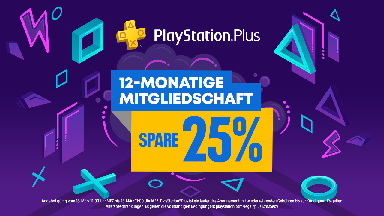 - PlayStation Plus: Die PS Plus-Mitgliedschaft für 12 Monate ist im Angebot für 44,99 € verfügbar (25% Rabatt)