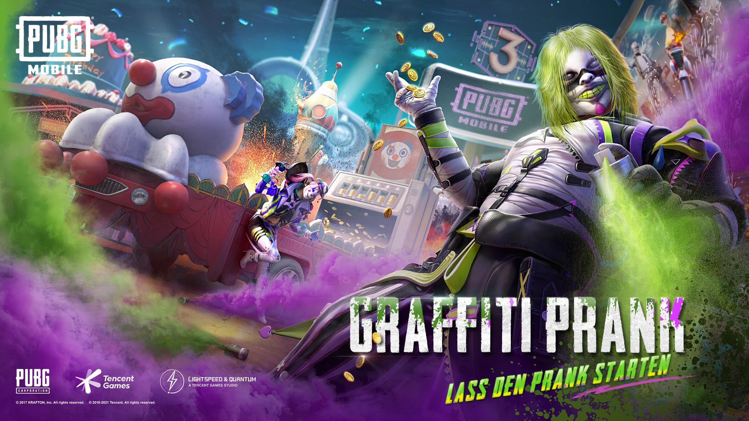 Zusätzlich zum kommenden PUBG MOBILE x Godzilla vs. Kong Event können sich die Spieler in den brandneuen Modus "Clowns' Tricks" stürzen. Bis Montag, den 10. Mai, werden Clowns im Spiel Unfug treiben. Spieler können Clownsmarken sammeln und sie im neu hinzugefügten Clown-Shop-Fahrzeug in Erangel gegen verschiedene Kampfausrüstung und strategische Gegenstände eintauschen. Spieler können jetzt auch die Musik-Graffiti-Wand dekorieren, um interaktive Melodien auszulösen.