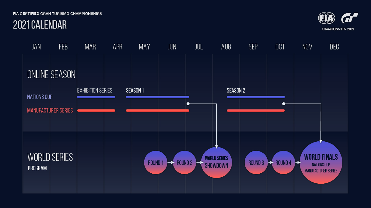 Schon im April diesen Jahres starten die FIA Certified Gran Turismo Championships in ihr mittlerweile viertes Jahr. Wie auch im vergangenen Jahr werden die Championships 2021 in Gran Turismo Sport rein online ausgetragen, bieten aber dank verbesserter Broadcast-Technik und neuem Format viel Aufregendes für alle Teilnehmer und den Fans vor den Bildschirmen.