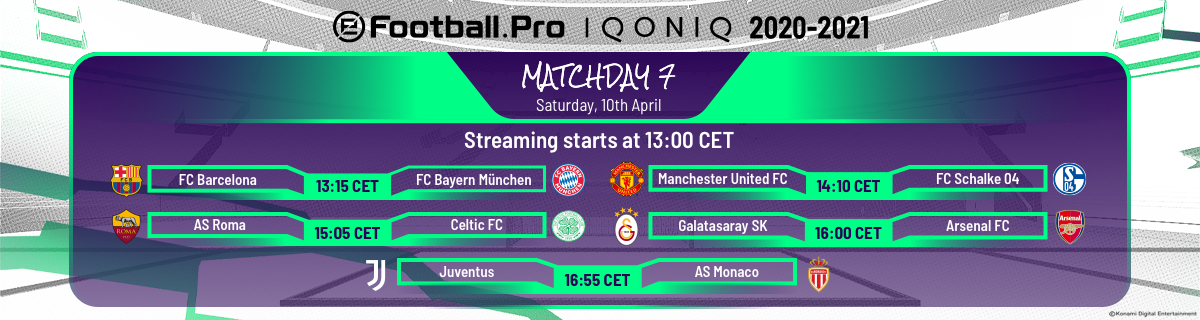 Konami Digital Entertainment verkündete im Vorfeld des siebten Spieltages der eFootball.Pro IQONIQ alle Informationen, anstehenden Matches und Streaming-Details zum Spieltag, der am Samstag, den 10. April 2021 stattfindet.