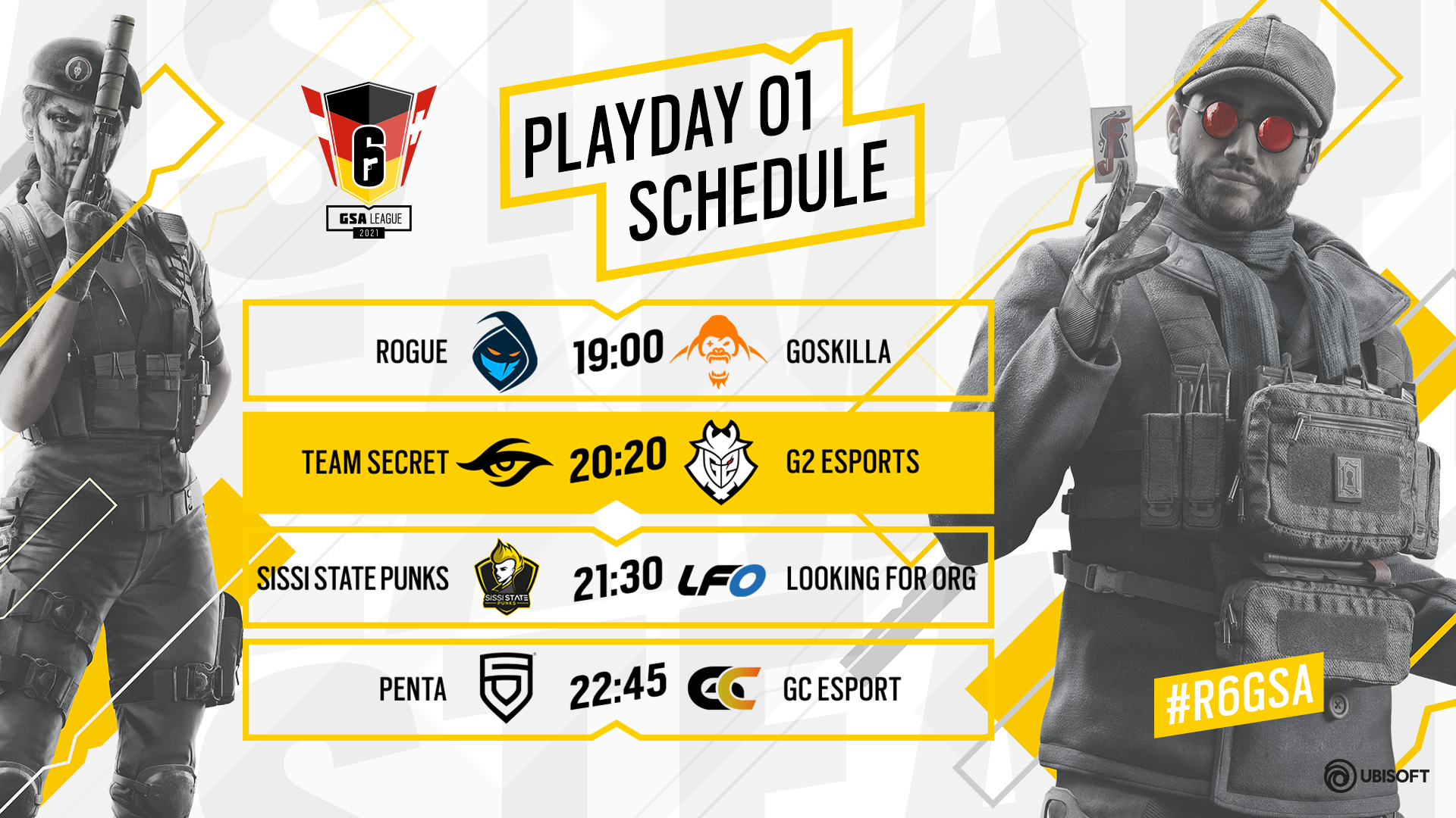 Bereits der erste Spieltag liefert E-Sport Fans ein wahres Fest: Gleich im ersten Match trifft heute um 19 Uhr Rogue auf GoSkilla (ehemals DIVIZON). Im vergangenen Jahr gab es bei dieser Paarung direkt die erste große Überraschung – startet Goskilla auch heute wieder mit einem Sieg gegen Rogue? Nicht nur dieses erste Match wird live auf dem offiziellen Twitch-Kanal twitch.tv/rainbow6de übertragen, sondern auch alle weiteren Matches der GSA League 2021 - immer donnerstags ab 18 Uhr.