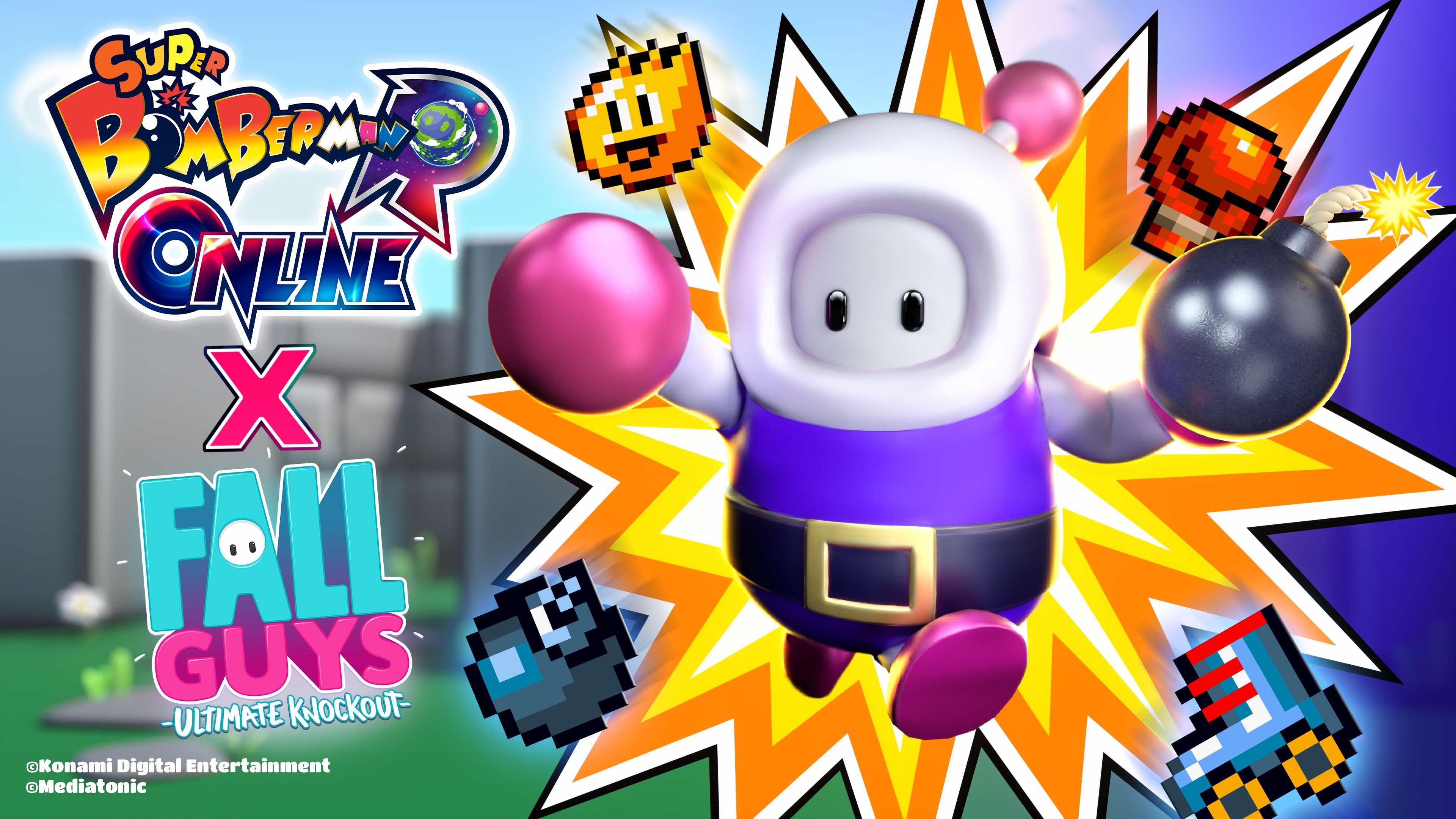 Konami Digital Entertainment B.V. und Mediatonic verkünden heute ein besonderes Crossover zwischen dem neu veröffentlichten SUPER BOMBERMAN R ONLINE und dem „bohnigen Stolper Royale“ Fall Guys: Ultimate Knockout.