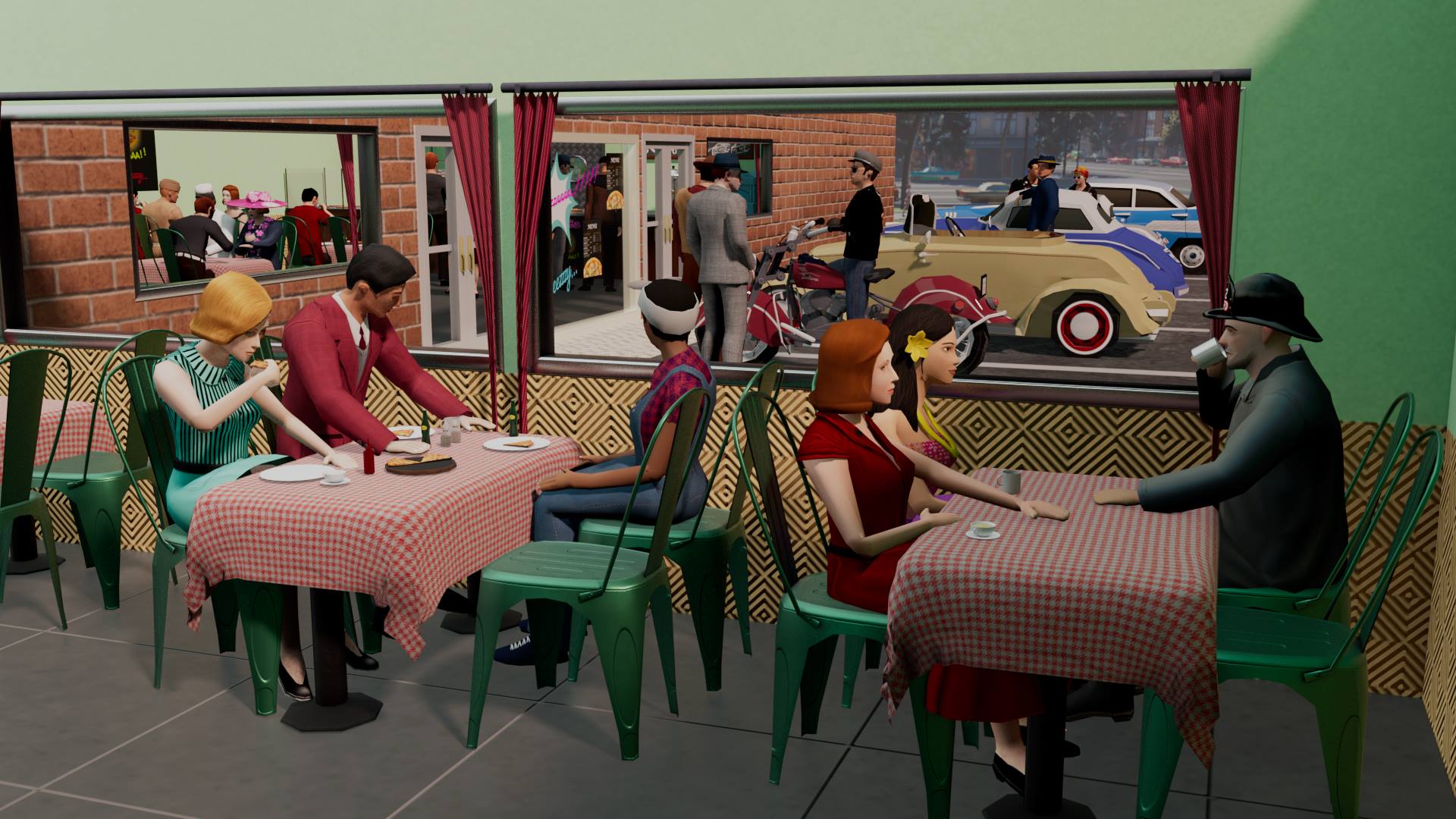 Jedes Detail von City Block Builder wird durch handgezeichnete Grafiken zum Leben erweckt und ist eine Hommage an die großartige Kultur dieser Zeit. Filme, Plakate, Comics und die Werbung spiegeln den Stil und die Stimmung der 1950er Jahre mit ihrer kühnen Farbgebung in Technicolor, ihren eleganten Outfits und ihren flotten Slogans wider. Selbst die Blätter der Bäume wurden ausgiebig recherchiert, um der damaligen Zeit gerecht zu werden und sich entsprechend den Jahreszeiten dynamisch zu verändern.