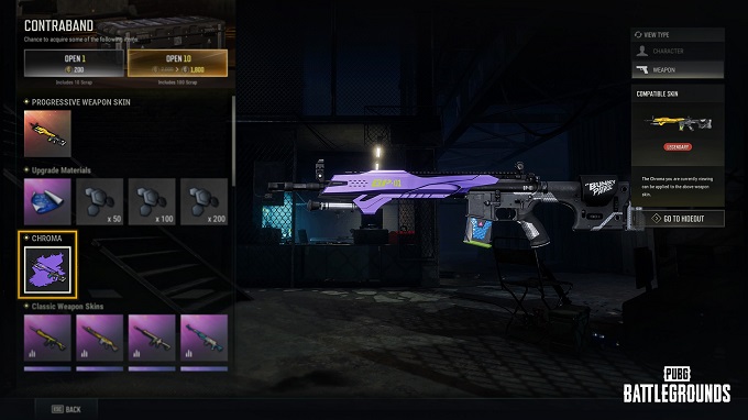 PUBG 25.2 führt mit dem Debüt des Chroma-Skin-Typs eine Veränderung des progressiven Waffenskin-Systems ein. Chroma verleiht Waffen-Skins lebhafte Farbtöne und Effekte. Chroma ist nicht nur auf Progressive Weapon Skins beschränkt, sondern verleiht auch Attachment-Skins, Beutekisten und Killfeed-Rahmen mehr Lebendigkeit und bietet den Spielern eine große Bandbreite an visuellen Möglichkeiten.