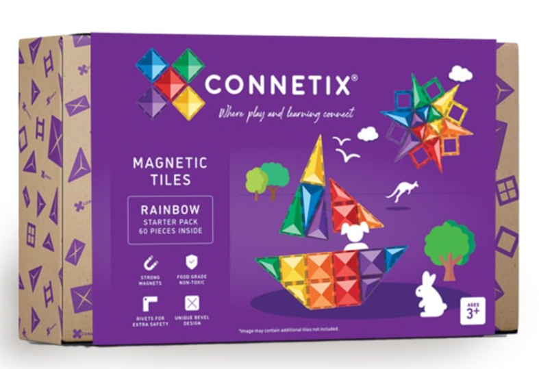 - CONNETIX Rainbow-Starterpaket 60 Stück (€78): Connetixtiles.com Dieses Set ist ein idealer Ausgangspunkt für Neueinsteiger bei Connetix Tiles. Es ist eine fantastische Möglichkeit, Kindern die Magie des magnetischen Bauens näher zu bringen. Mit 60 Teilen bietet es viel Spielraum für fantasievolles Spielen und fördert gleichzeitig die Entwicklung der Feinmotorik und des räumlichen Vorstellungsvermögens. Das Rainbow Starter Pack ist ein Tor zu einer Welt voller farbenfroher Möglichkeiten.