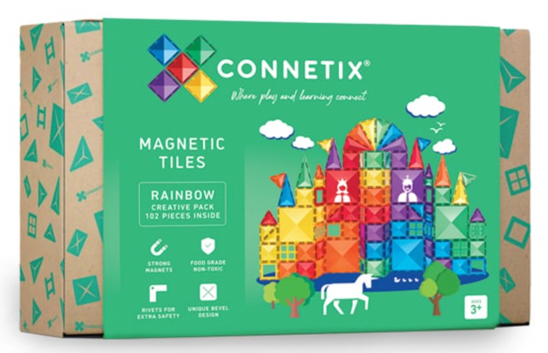 - CONNETIX Rainbow Creative Pack 102 Teile (€108) Connetixtiles.com Dieses umfassende Set ist eine Fundgrube der Kreativität. Mit 102 farbenfrohen, magnetischen Spielsteinen bietet es Kindern endlose Möglichkeiten, eine Vielzahl von Strukturen zu bauen, von hoch aufragenden Wolkenkratzern bis hin zu komplizierten Labyrinthen. Das Rainbow Creative Pack fördert die Fähigkeit zum kritischen Denken, während Kinder Formen, Größen und Muster entwerfen, bauen und damit experimentieren. Es ist die perfekte Leinwand, auf der sich die Fantasie Ihres Kindes entfalten kann.