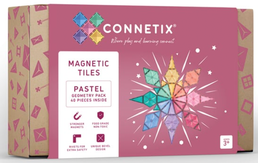 - CONNETIX 40-teiliges Pastell-Geometrie-Paket (€63): Connetixtiles.com Mit dem 40-teiligen Pastel Geometry Pack wird Geometrie zu einem spannenden Spielplatz. Kinder können Formen, Winkel und Symmetrien erforschen und so den Grundstein für das mathematische Verständnis legen. Dieses Set ist ein hervorragendes Lehrmittel, das die Freude am kreativen Spielen mit den Vorteilen der Geometrie verbindet und das Lernen zu einem wirklich angenehmen Erlebnis macht.