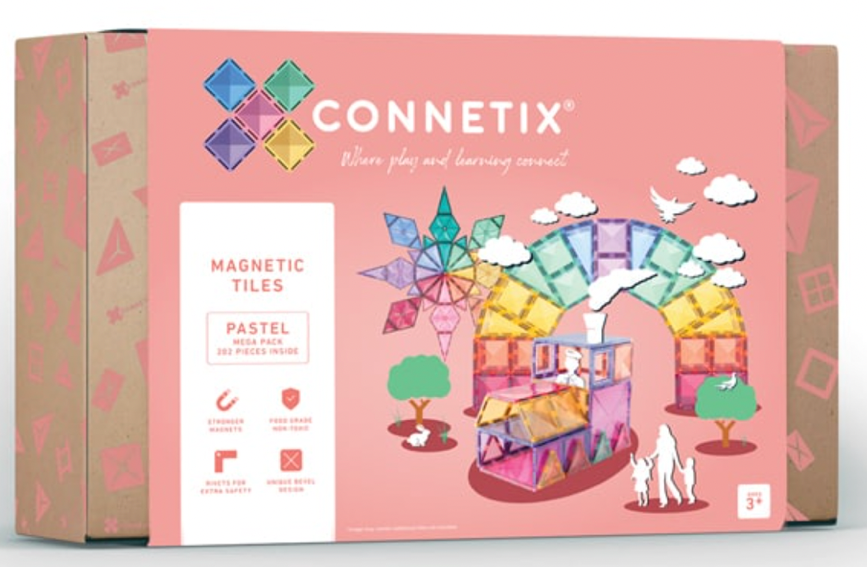 - CONNETIX 202-teiliges Pastell-Megapaket (€226): Connetixtiles.com Für alle, die große Träume haben, ist das Pastel Mega Pack die ultimative Kollektion. Mit beeindruckenden 202 Teilen eignet es sich perfekt für gemeinsames Spielen und groß angelegte Bauarbeiten. Dieses Set fördert Teamarbeit, Problemlösung und fantasievolles Geschichtenerzählen, während Kinder sich auf epische Abenteuer in ihren eigenen Welten begeben.