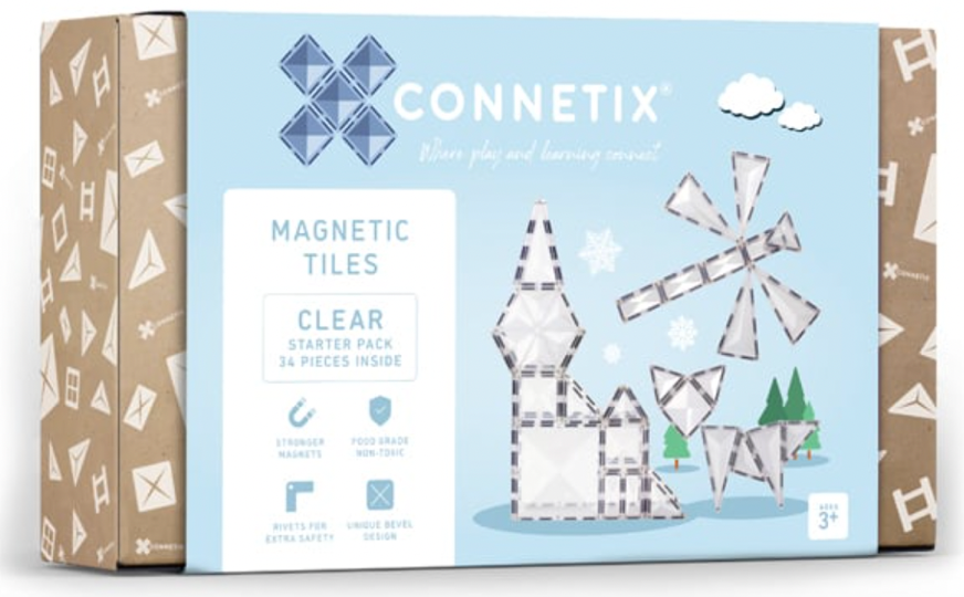 - CONNETIX 34-teiliges transparentes Paket (€54) Connetixtiles.com Das Clear Pack verleiht Connetix Tiles eine faszinierende Dimension. Mit 34 transparenten Teilen können Kinder Strukturen mit faszinierenden durchscheinenden Elementen schaffen und gleichzeitig erkunden, wie Formen und Farben interagieren. Dieses Set regt Kinder zum Nachdenken über Design und Ästhetik an und verbessert gleichzeitig ihre Feinmotorik.