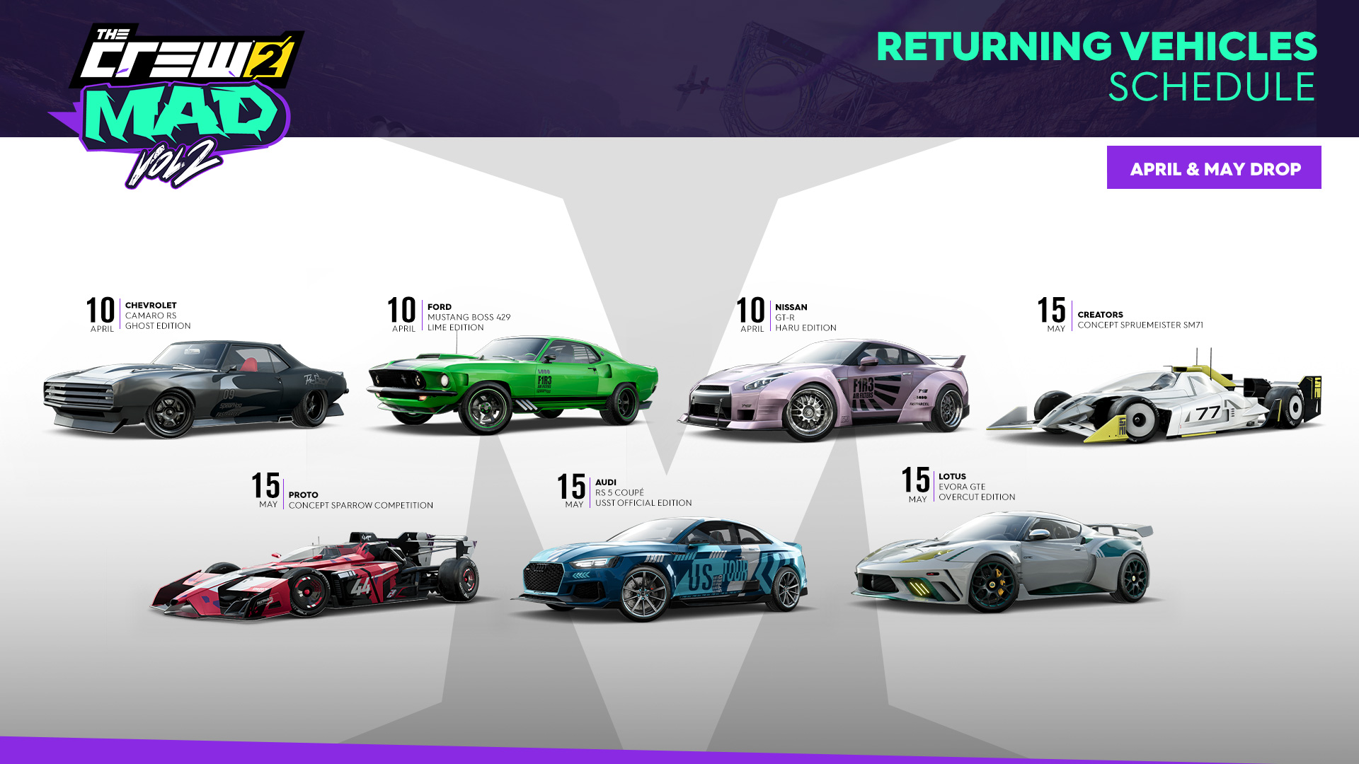 Düsseldorf, 5. März 2024 – Ubisoft® gab heute bekannt, dass mit Mad Vol. 2 nach sechs Jahren das letzte Content-Update für The Crew 2 erscheint. Dieses Update stellt einen Meilenstein für The Crew 2 dar und führt die optimierte Inhaltsrotation für grenzenlose Spieler-kreierte Inhalte da.