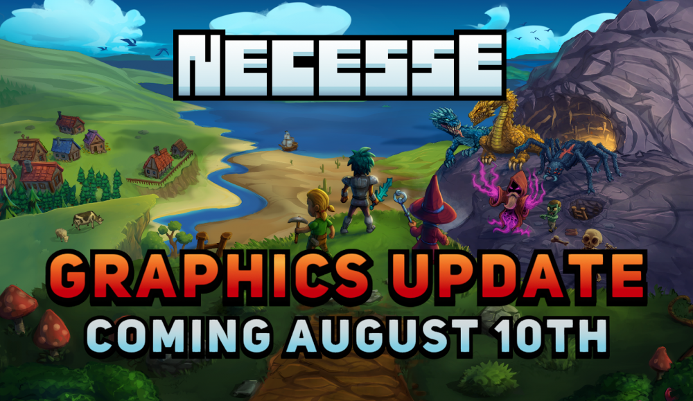 Der neue Trailer zeigt Necesse's Helden und die Freunde, die er auf dem Weg gefunden hat, und wie sie sich den zahlreichen Herausforderungen von Necesse stellen. Darunter: Abenteuer durch tiefste Tiefen, der Aufbau und die Verteidigung einer mächtigen Siedlung, und epsiche Kämpfe gegen mächtige End-Game-Bosse für ihre fette Beute! Der Trailer zeigt sowohl alte als auch neue Inhalte, un das alles in dem neuen Look des Graphics Update. Vor einem Jahr began Fair Games zu rekrutieren - darunter zwei erfahrene Game Artists, um den gesamten Look von Necesse auf ein neues Level zu heben. Jetzt sind 3298 Assets neu gezeichnet worden, und Fair Games bringt euch voller Stolz den folgenden Trailer: