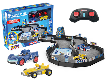 | Salzburg, 05.09.2024 – In die aufregende Welt von Sonic eintauchen und dank „Ready to Run“ direkt nach dem Auspacken mit der Action beginnen: Mit dem neuen Carrera RC Team Sonic Racing™ Rennstreckenset treffen Geschwindigkeit, Fantasie und Abenteuerlust aufeinander! Durch die Originallizenz sehen die bekannten Helden den Vorbildern aus Videospielen und TV zum Verwechseln ähnlich. Perfekt um gemeinsam mit Sonic und seinem treuen Freund Tails actiongeladene Rennen und Manöver zu erleben. So flink wie der schnellste Igel der Welt: Mit dem Team Sonic Racing™ Rennstreckenset steht spannenden Rennen im Kinderzimmer oder auf dem Tisch nichts mehr im Weg. Neben dem originaltreuen Look der zwei blauen und gelben Flitzer im Maßstab 1:43 mit einer Länge von 7,5 cm und zwei Controllern mit Full Function Steuerungstechnologie enthält das Set auch jede Menge Zubehör. Mit 15 langen und 30 kurzen Streckenelementen können junge Rennfahrer ab 6 Jahren ihre eigenen aufregenden Rennkurs bauen oder durch coole Dekorationen im ikonischen Sonic-Design die Welt der schnellen Igel erleben. Die beiden Autos haben eine Fahrzeit von 15 Minuten für ausgedehnte Abenteuer auf der Strecke. Nach 30 Minuten Aufladen sind sie wieder einsatzbereit – perfekt, um währenddessen eine neue, erlebnisreiche Piste zu bauen. Zudem schalten sich die Autos automatisch aus, wenn sie nicht benutzt werden, um Energie zu sparen und sicherzustellen, dass der actionreiche Fahrspaß jederzeit weitergehen kann. Alle Carrera RC Fahrzeuge sind dank „Ready to Run“ die perfekten Geschenke, denn der Fahrspaß startet direkt nach dem Auspacken. Das nötige Zubehör wie Akkus, Ladekabel, zwei Controller und Batterien für die Controller sind bereits im Lieferumfang enthalten und die ferngesteuerten Action-Fahrzeuge damit sofort fahrbereit - Auspacken und loslegen! Weitere Informationen zu allen Autorennbahnen, Fahrzeugen, Booten, Helikoptern und Quadrocoptern finden Sie unter carrera-toys.com |
