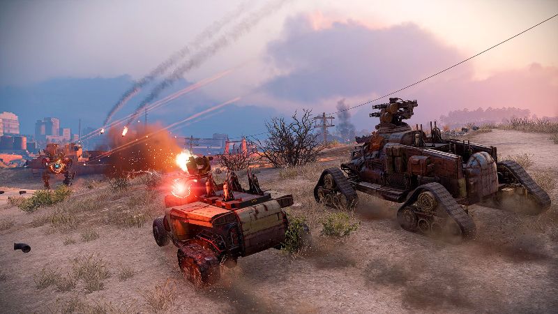 | Zu den wichtigsten Neuheiten im Arsenal der Steppenwölfe gehören die Vorderräder „Outcast", die gepanzerten Fahrzeugen, die sich zurückhalten und aus der Ferne angreifen, Boni verleihen, der Minenleger „Squall", der einen Luftangriff auf ausgelegte Minen auslöst, und der Granatwerfer „RPG-105 Darling", der zweistufige Projektile mit zusätzlichem Aufprallschaden abfeuert. | |