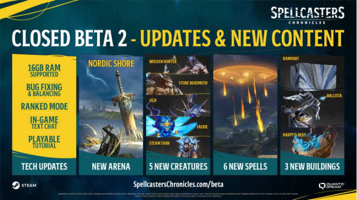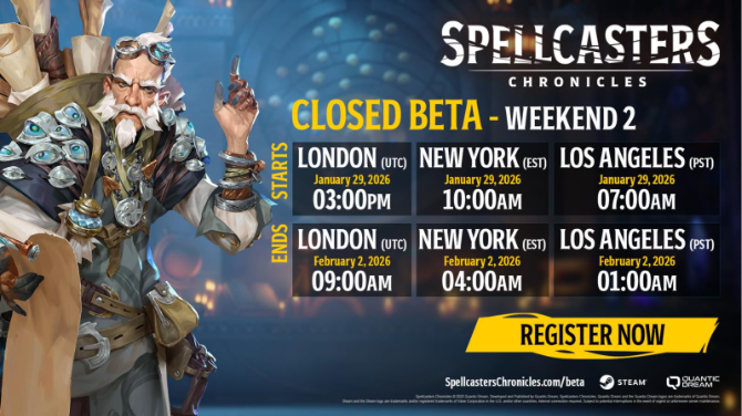 | PARIS – 29. JANUAR 2026 – Das legendäre Entwicklerstudio Quantic Dream startet heute die zweite Closed Beta von Spellcasters Chronicles über Steam auf dem PC. Die Server und damit die Tore nach Ashkenon wurden heute um 16:00 Uhr CET geöffnet und bleiben bis zum 2. Februar um 10:00 Uhr CET verfügbar. Diese neue Testphase baut direkt auf dem konstruktiven Feedback der Spieler:innen während der ersten Closed Beta im Dezember 2025 auf und führt neue Inhalte, Komfortfunktionen und technische Verbesserungen ein, bevor das Spiel am 26. Februar 2026 im Early Access startet.