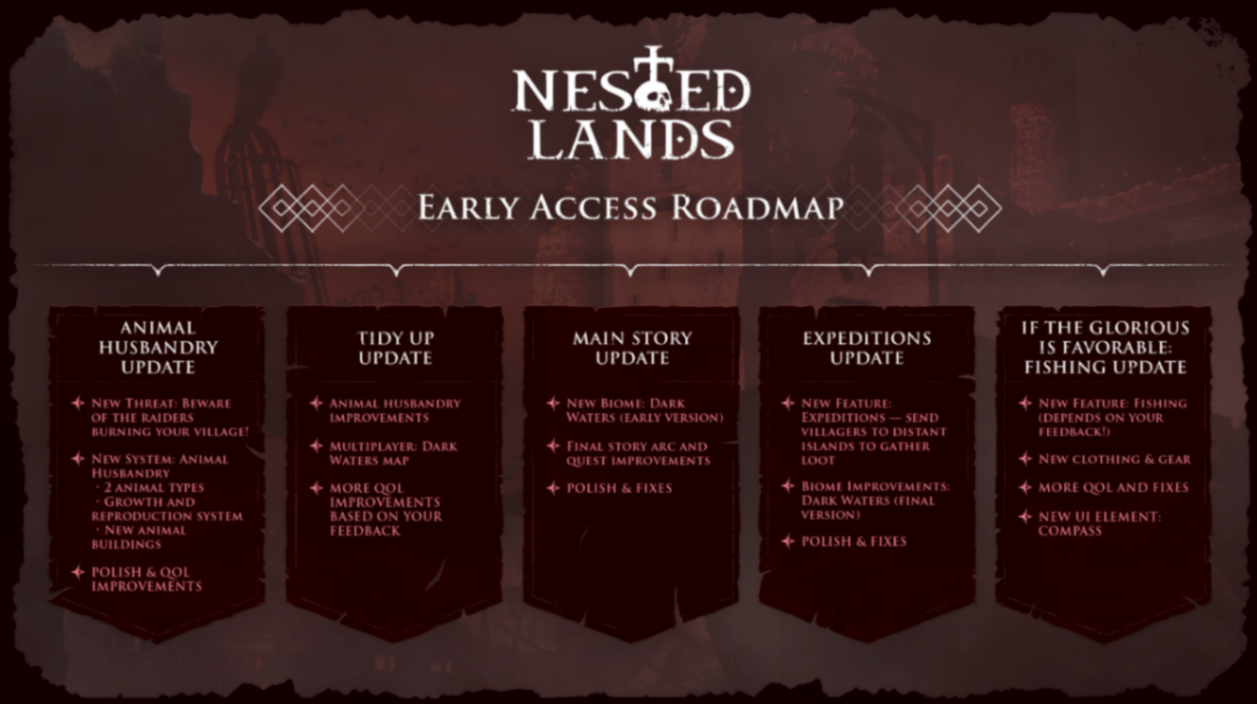 Nach dem EA-LAunch können sich die Spieler auf eine Reihe von Updates zum Thema Siedlungsbau, Hauptstory, Biome und zur allgemeinen Lieblings-Ingame-Aktivität, Angeln, freuen. Quality of Life-Verbesserungen werden ebenfalls Teil der Updates sein.