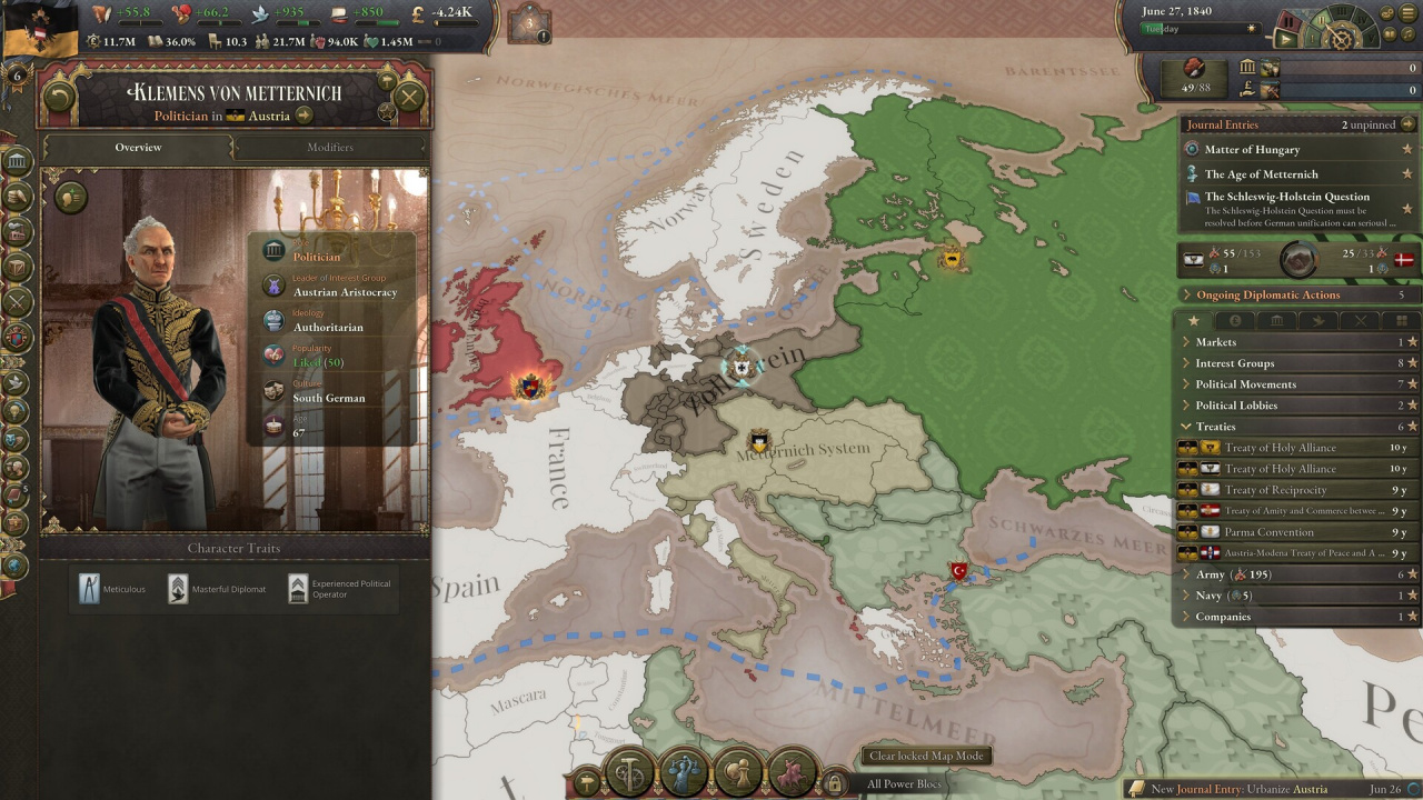 Victoria 3: National Awakening konzentriert sich auf Mitteleuropa und den Balkan. Das österreichische Kaiserreich, das ständig zwischen Dutzenden von Kulturen und ethnischen Gruppen balanciert, und das Osmanische Reich, das die Kontrolle über europäische Gebiete verliert, werden zu wichtigen Anziehungspunkten. Die neue Mechanik „Nationaler Eifer“ ermöglicht es dir, das Wachstum des Nationalbewusstseins zu simulieren und es zu einem aktiven Faktor zu machen, der Politik und Diplomatie beeinflusst. Rebellionen sind nun nicht mehr nur eine Bedrohung für die Stabilität, sondern auch ein Instrument, das manipuliert werden kann. Dabei stehen dir drei Optionen zur Verfügung, mit denen du die Situation lösen kannst: diplomatische Verhandlungen, wirtschaftliche Zugeständnisse oder harte Unterdrückung mit Reformen. Jede Entscheidung hat neue Konsequenzen und sorgt für mehr Abwechslung und Spannung im Spiel. Österreich hat eine ganze Reihe von Ereignissen, die mit Metternich und seinen Versuchen, die Monarchie am Leben zu erhalten, zusammenhängen. Du kannst das Reich in einen bürokratischen, fast kosmopolitischen Staat verwandeln oder Reformen durchführen und damit seinen Zusammenbruch riskieren. Die Osmanen stehen unterdessen vor ständigen Herausforderungen: Aufstände auf dem Balkan, Koalitionen unter Nachbarn und ein Verlust an Einfluss. In dieser Phase entsteht die Möglichkeit, Jugoslawien oder sogar einen alternativen südslawischen Staat, wie beispielsweise Illyrien, zu gründen.