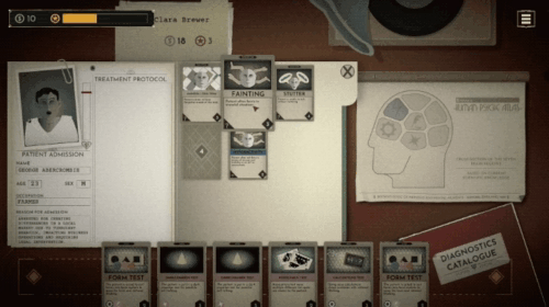 In Sanatorium: A Mental Asylum Simulator dreht sich alles darum, dass du verstehst, was deine Patienten brauchen, und gleichzeitig clever genug bist, um nicht entdeckt zu werden. Dazu musst du deine Patienten richtig diagnostizieren und dabei eine ungewöhnliche Form der medizinischen Pseudowissenschaft namens Phrenologie anwenden. Denn wenn du nicht weißt, was ihnen fehlt, kannst du sie auch nicht behandeln und wenn du sie nicht behandeln kannst, landest du selbst in der Anstalt. Wenn du mit den einzelnen Patienten sprichst, wirst du feststellen, dass ihre Persönlichkeiten sehr unterschiedlich sind. Einige von ihnen sind bspw. Gesellschaftsmenschen, andere wiederum sind Veteranen, die mit Kriegstraumata zu kämpfen haben. Eine Sache, die das Spiel brillant macht, ist seine Untersuchung, wie stigmatisiert psychische Gesundheit damals war und wie dies sogar bis heute fortbesteht. Bei der Vielzahl der Symptome und Krankheiten fühlt sich kein Patient jemals wirklich gleich an. Um das Problem eines Patienten zu diagnostizieren, musst du zunächst herausfinden, was jedes Symptom benötigt. Dazu sprichst du mit dem Patienten und ordnest seine Symptome einem bestimmten Bereich der Phrenologie-Tabelle zu. Du kannst auch Tests in Form von Karten verwenden, mit denen du weitere Symptome aufdecken kannst. Sobald der Patient in Behandlung ist, kannst du die entsprechenden Karten verwenden, um seine Krankheit zu bekämpfen. Die Art und Weise, wie das Spiel diese Momente behandelt, gefällt mir besonders gut. Du musst die Behandlung tatsächlich unterschreiben, indem du mit der Maus schreibst. Außerdem musst du sie abstempeln, wenn du sie entlassen möchtest. Beide Aktivitäten sind unglaublich befriedigend. Sobald man sich in das Spiel eingefunden hat, macht es einfach Spaß, diese alltäglichen Handlungen auszuführen.