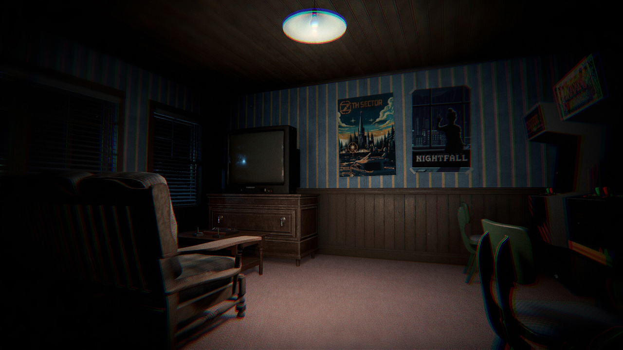 Der Fortschritt im Dungeon ist linear, wird jedoch durch Momente unterbrochen, in denen man in den Keller zurückkehren muss, um Hinweise zu erhalten oder neue Fähigkeiten freizuschalten. Die Stimme, die den Protagonisten leitet, wird zunehmend zweideutiger, während sich etwas – oder jemand – im Schatten des Raumes zu bewegen scheint und aus der Ferne beobachtet. Die Spannung steigt, ohne jemals in echte Gefahr zu münden, aber gerade dieses Fehlen einer direkten Bedrohung macht das Erlebnis umso beunruhigender: THEM spielt mit dem Verdacht, der Wahrnehmung, dem Gefühl der Einsamkeit, selbst an einem vertrauten Ort. Die Optik erinnert an die 90er Jahre, mit neonbeleuchteten Spielhallen und flackernden CRT-Monitoren. Der visuelle Kontrast zwischen dem düsteren Realismus der First-Person-Welt und der pixeligen Grafik des Plattformspiels ist das Markenzeichen des Titels, eine Entscheidung, die die Dissonanz und das Gefühl des Unbehagens noch verstärkt. Das Sounddesign verdient eine gesonderte Erwähnung: Regen, metallische Geräusche und Klangverzerrungen tragen zu einer ständig angespannten und melancholischen Atmosphäre bei. THEM weiß, wann es Raum für Stille lassen muss, und nutzt dies geschickt aus.