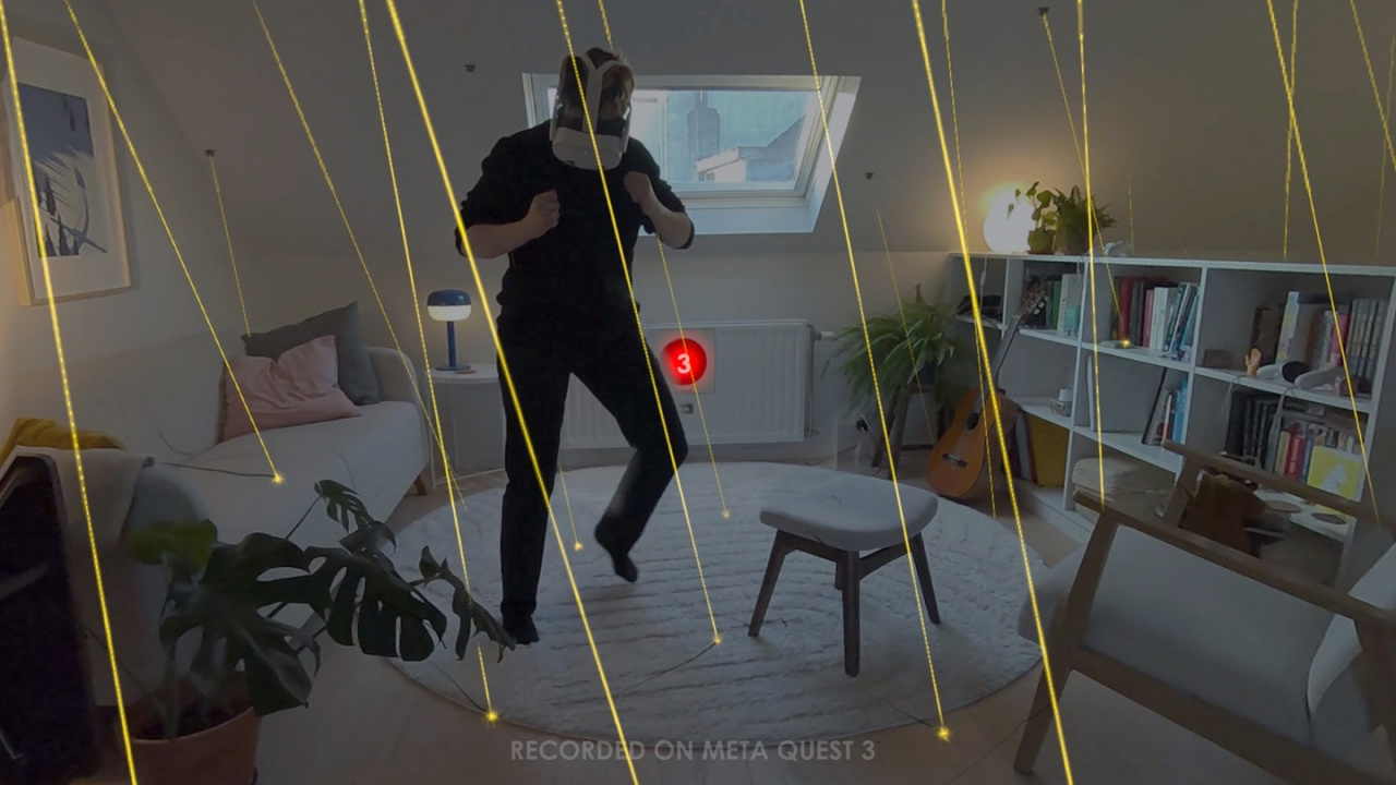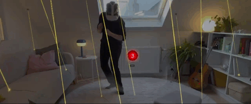 Laser Dance wurde vorab auf Meta Quest getestet und erwies sich als überraschend ausgereiftes Projekt, obwohl es sich noch in einer vorläufigen Version befindet. Die Idee ist ebenso einfach wie genial, den eigenen physischen Raum in einen Parcours voller roter Laserstrahlen zu verwandeln, denen man ausweichen muss, genau wie in den kultigsten Szenen aus Actionfilmen. Und wenn man „Actionfilm“ sagt, denkt man unweigerlich an Mission Impossible mit seiner Fantasiewelt aus Geheimagenten, Stunts an der Grenze des Menschlichen und Alarmanlagen, die beim kleinsten Fehler losgehen. Von der ersten Minute an versucht Laser Dance genau diese Atmosphäre zu schaffen. Die Version enthält noch keine endgültige Musik oder Soundeffekte, doch es braucht nur sehr wenig, um sich in diese Art von Erfahrung hineinzuversetzen, denn das Headset erkennt den Raum, man wählt zwei Punkte im Raum aus und die Software generiert sofort einen Pfad aus roten Laserstrahlen, die in der Luft schweben. Das Ergebnis ist fast schon filmreif.