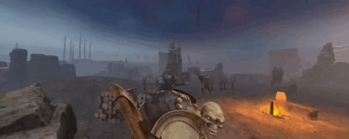 Die Geschichte ist leicht, aber wirkungsvoll. Es gibt keine langen Zwischensequenzen oder ausführlichen Erklärungen. Stattdessen erzählt die Welt selbst den Großteil der Geschichte. Jeder Bereich wirkt wie ein Teil eines zerstörten Jenseits, mit ruinierten Gebäuden, nebligen Landschaften und dem allgegenwärtigen Gefühl, dass man hier nicht willkommen ist. Es gibt ein klares Thema von Tod, Prüfung und Wiedergeburt, das gut zum Roguelite-Loop passt. Jeder Durchlauf fühlt sich wie ein weiterer Versuch an, sich seinen Platz zu verdienen oder zumindest lange genug zu überleben, um zu verstehen, was diese Welt ist. Das Gameplay ist das, was Crossings wirklich auszeichnet. Im Kern handelt es sich um ein kampfbetontes Spiel, und die Kämpfe sind ausgezeichnet. Man kämpft hauptsächlich mit Nahkampfwaffen wie Schwertern, Äxten und Keulen, kombiniert mit gestenbasierter Magie, die man durch physische Armbewegungen ausführt. Diese Mischung funktioniert überraschend gut und wirkt, als wäre sie speziell für VR entwickelt worden und nicht aus einem flachen Spiel adaptiert worden.
