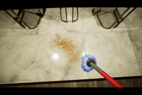 Grafisch ist Cleaning Simulator funktional gehalten. Die Umgebungen sind ausreichend detailliert, um Verschmutzungen gut sichtbar zu machen, wirken insgesamt aber eher schlicht. Effekte beim Reinigen sind klar erkennbar und geben ein befriedigendes Feedback, wenn Flächen sauber werden. Technisch gibt es keine großen Highlights, aber auch keine gravierenden Schwächen. Alles erfüllt seinen Zweck. Der Sound ist zurückhaltend, aber passend. Reinigungsgeräusche, Wasser, Wischen und Maschinenklänge begleiten dich konstant und unterstützen das Gefühl von Arbeit und Fortschritt. Die Hintergrundmusik ist dezent und läuft meist unauffällig nebenher. Akustisch entsteht dadurch eine ruhige, fast meditative Atmosphäre, die gut zum Gameplay passt.