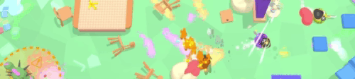 Das Gameplay ist klar auf schnelle Matches ausgelegt. Du bewegst dich durch Räume, nutzt Objekte, weichst Angriffen aus und versuchst, deine Gegner auszuschalten. Ein großer Teil des Reizes liegt in der Umgebung. Alltägliche Gegenstände werden zu Werkzeugen oder Waffen, und du musst ständig improvisieren. Dadurch entsteht ein dynamisches Spielgefühl, das sich oft unvorhersehbar entwickelt. Die Steuerung ist direkt und funktioniert gut, was bei dem schnellen Tempo wichtig ist. Du reagierst schnell, wechselst Positionen und versuchst, die Kontrolle über die Situation zu behalten. Allerdings kann das Spiel auch chaotisch werden. Gerade wenn viele Dinge gleichzeitig passieren, verlierst du schnell den Überblick. Das gehört zwar zum Konzept, kann aber auch frustrierend sein.