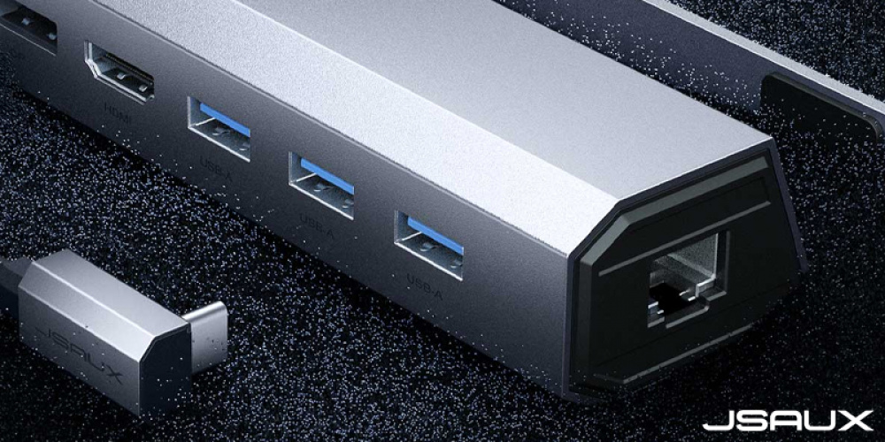 The new model of the JSAUX dock series features a long-awaited DisplayPort connector and three USB-A 3.2 ports