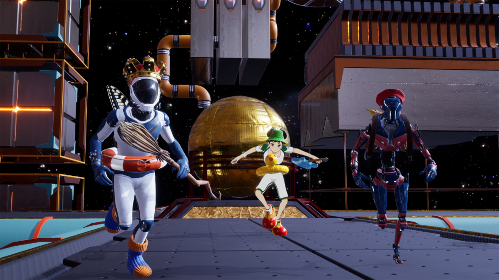 Time-limited challenges add an extra dimension of fun to your runs through Astral Tracks' cyber-sci-fi settings and serve to ratchet up the level of competition by bringing players together to compete on the same tracks. Your progress through the game will be rewarded with unlockable costumes and accessories that can be purchased with in-game currency (there are no microtransactions), including diving fins, plungers, balloon animals, silly hats, baked goods and tutus, adding an outlandish splash of fun to the game's interdimensional sci-fi aesthetics.